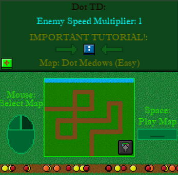 Defend Against dots with multiple types of towers with over 50 maps! This is a casual simplistic strategy game. The difficulty of this game depends on the difficulty of the the map you choose.